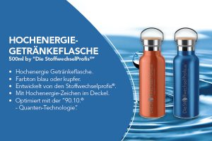 Nach nun 15 Jahren Erfahrung rund um das Thema Wasser und Quantenenergie, haben wir 2021 unsere eigene DieStoffwechselProfis® – HochenergieScheibe entwickelt, welche mittlerweile 2.000 fach erprobt ist. Die logische Konsequenz war für uns, das Hochenergie – Sortiment um eine praktische Getränkeflasche zu erweitern.